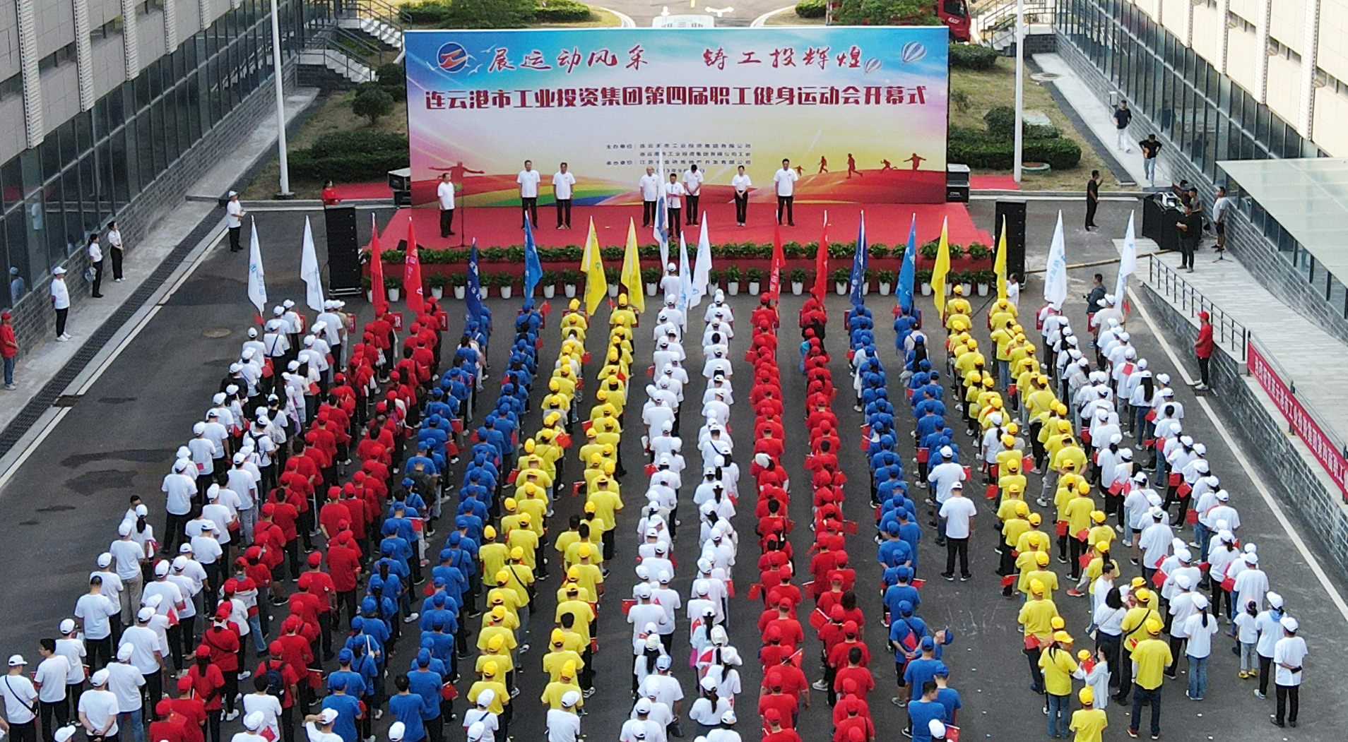 9月17日上午,B体育(中国)第四届职工健身运动会开幕式在连云港国际医药创新产业园隆重举行。B体育(中国)公司党委书记、董事长丁锐宣布运动会开幕,并为健步走活动发令;党委副书记、副董事长、总经理张六林致开幕词。房地产公司党总支书记、董事长、总经理陈青山致欢迎词。B体育(中国)公司党委副书记、工会主席戴鸿鸣主持开幕式。
