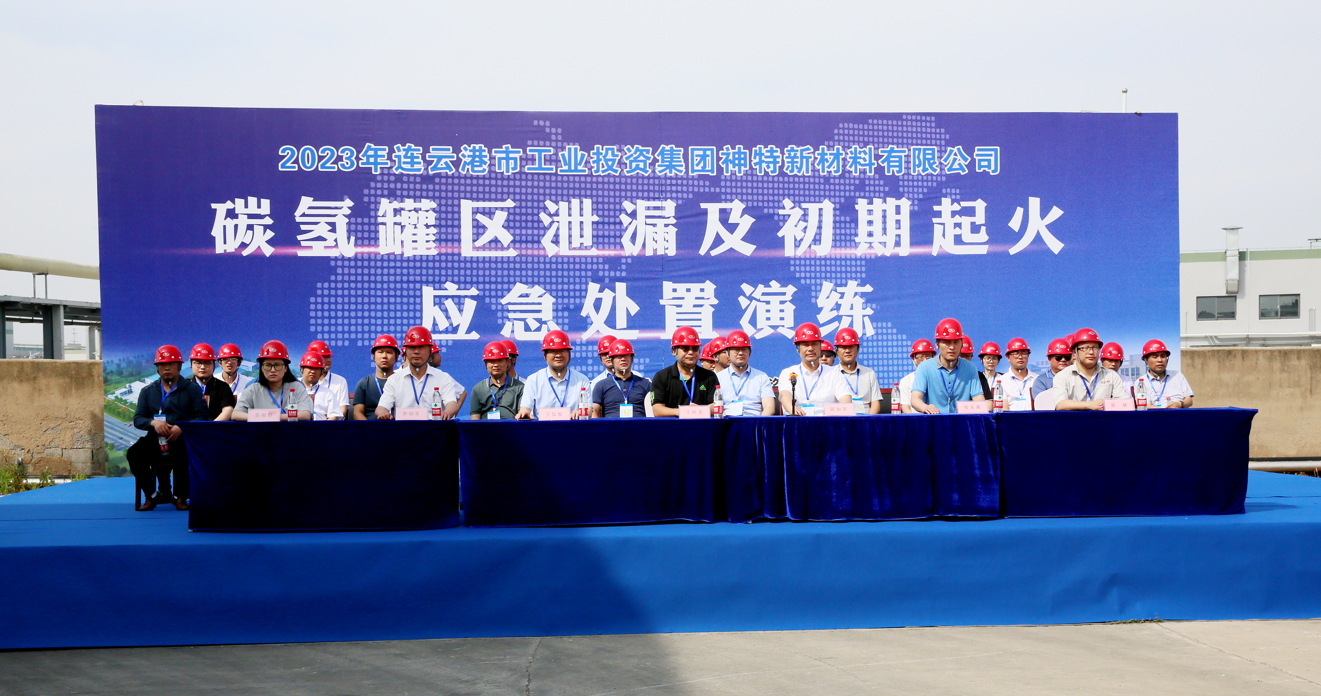 演练模拟神特新材料公司碳氢储罐区泄漏引发火灾事故,经现场处置、启动预案、应急响应、专业救援等程序,最终得到有效控制,达到预期效果。