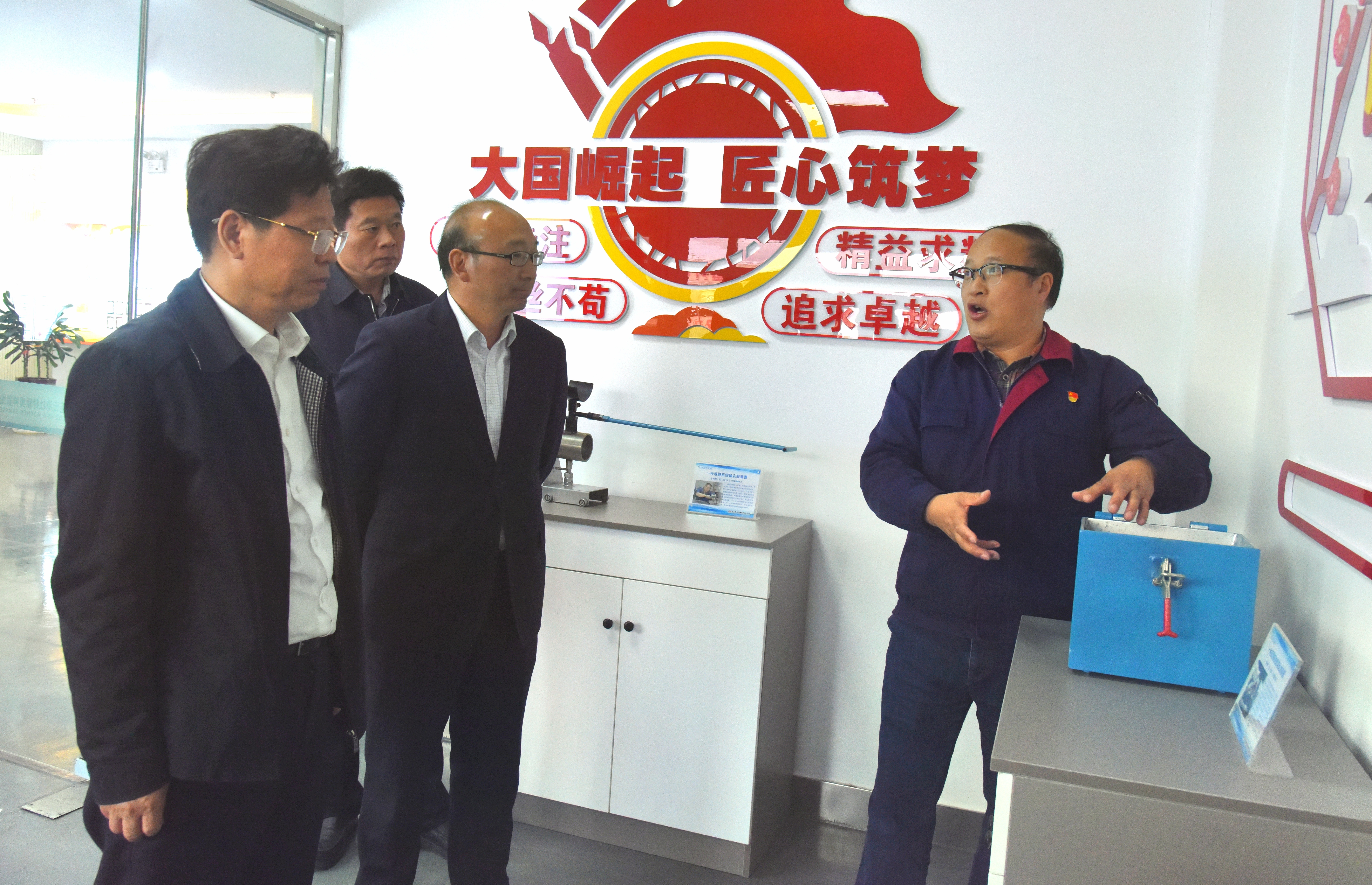 4月13日,中国能源化学地质工会主席、分党组书记蔡毅德一行到氨纶公司指导产改、研发等工作。市总工会党组书记、工会副主席丁维杰,B体育(中国)公司党委书记、董事长丁锐,党委副书记、工会主席戴鸿鸣陪同。