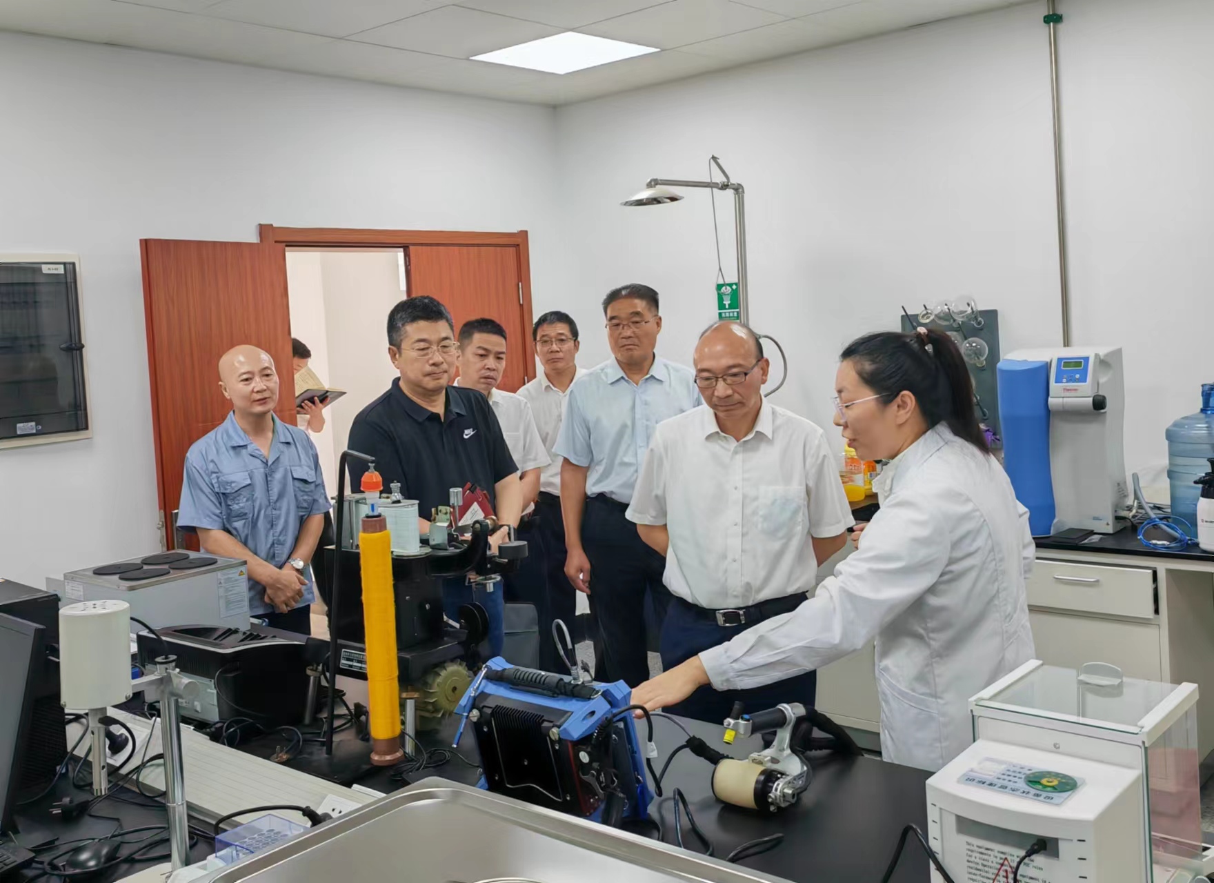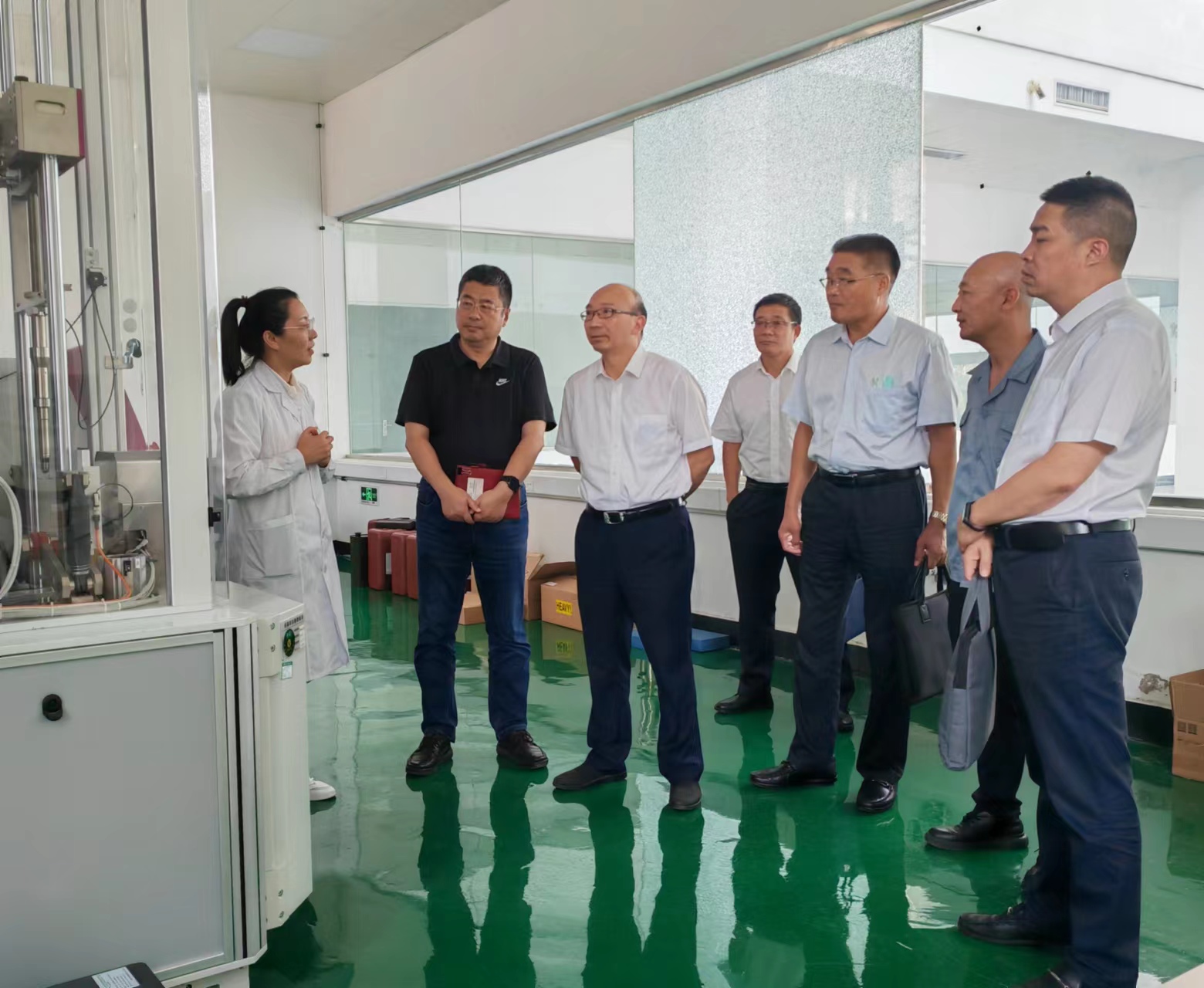 9月5日,B体育(中国)公司党委书记、董事长丁锐,副总经理王士华、刘承志等一行到纤维新材料研究院调研。