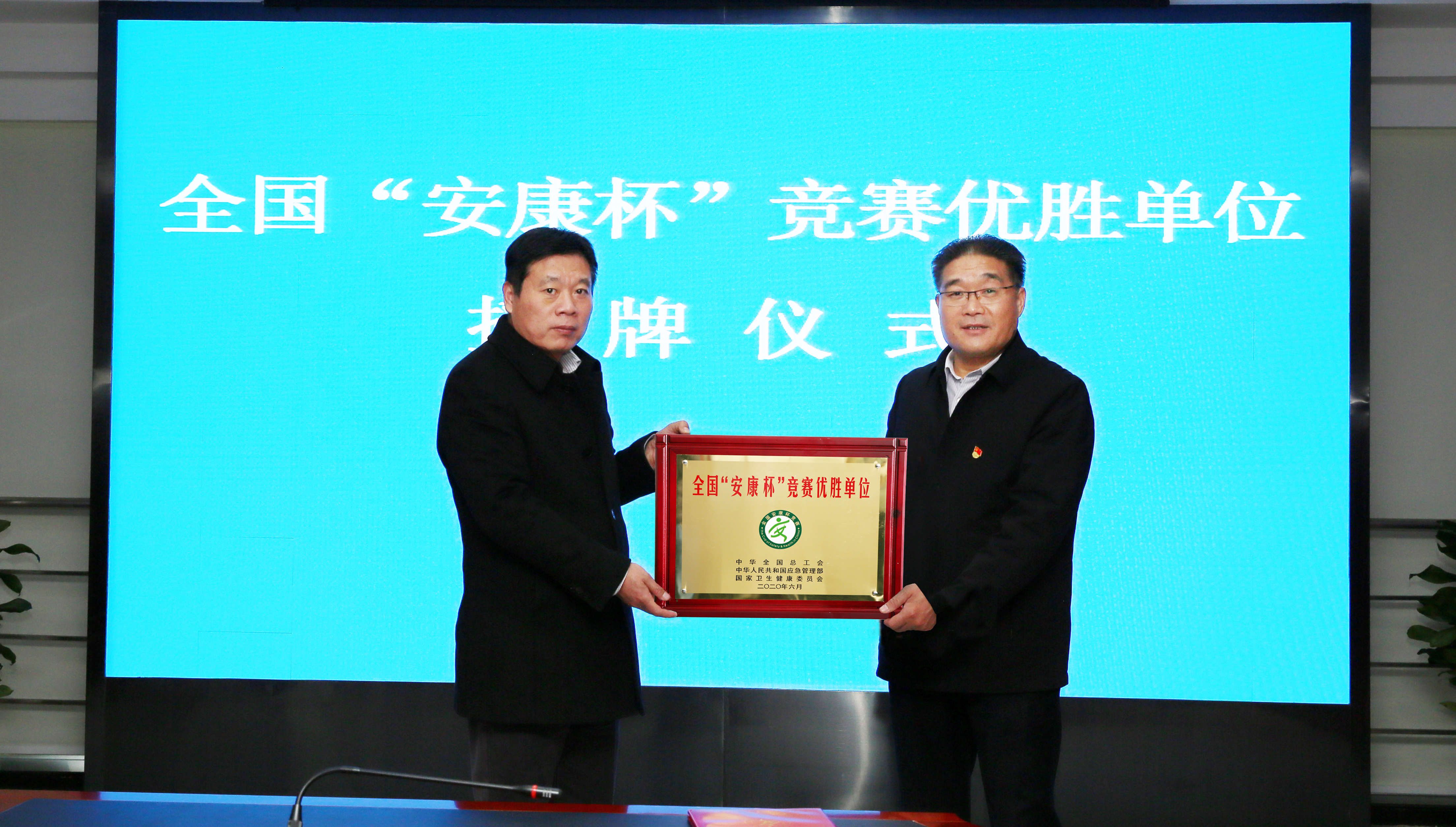 12月17日,市总工会党组书记、副主席丁维杰向B体育(中国)公司授予全国“安康杯”竞赛优胜单位奖牌。B体育(中国)公司党委书记、董事长杨龙,党委副书记戴鸿鸣、工会主席刘承志参加授牌仪式。