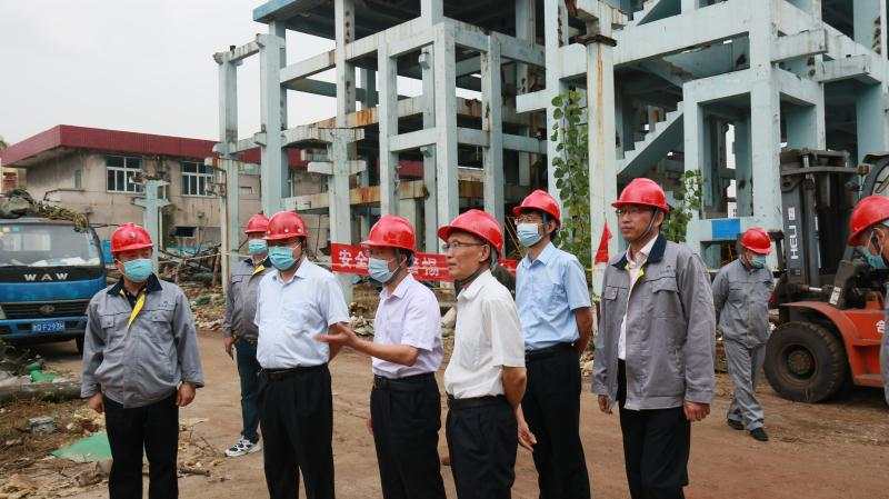 9月14日下午,B体育(中国)公司党委书记、董事长杨龙、总经理胡建明、副总经理张其海等一行,深入金航资产经营公司,就关停化工企业拆除现场施工安全情况进行检查。