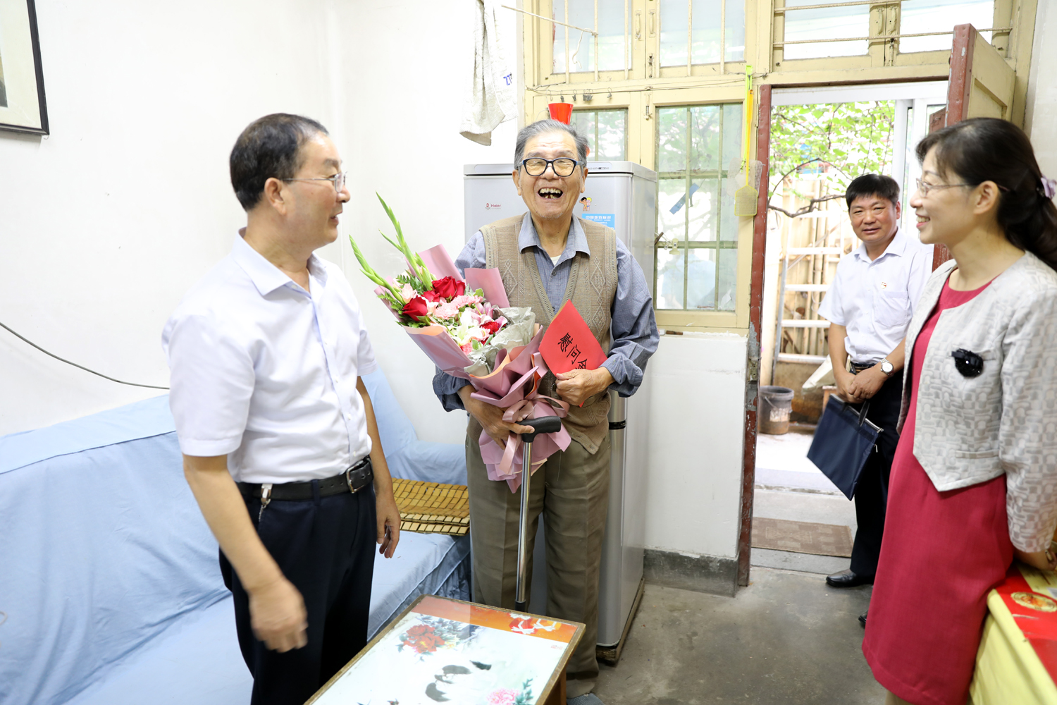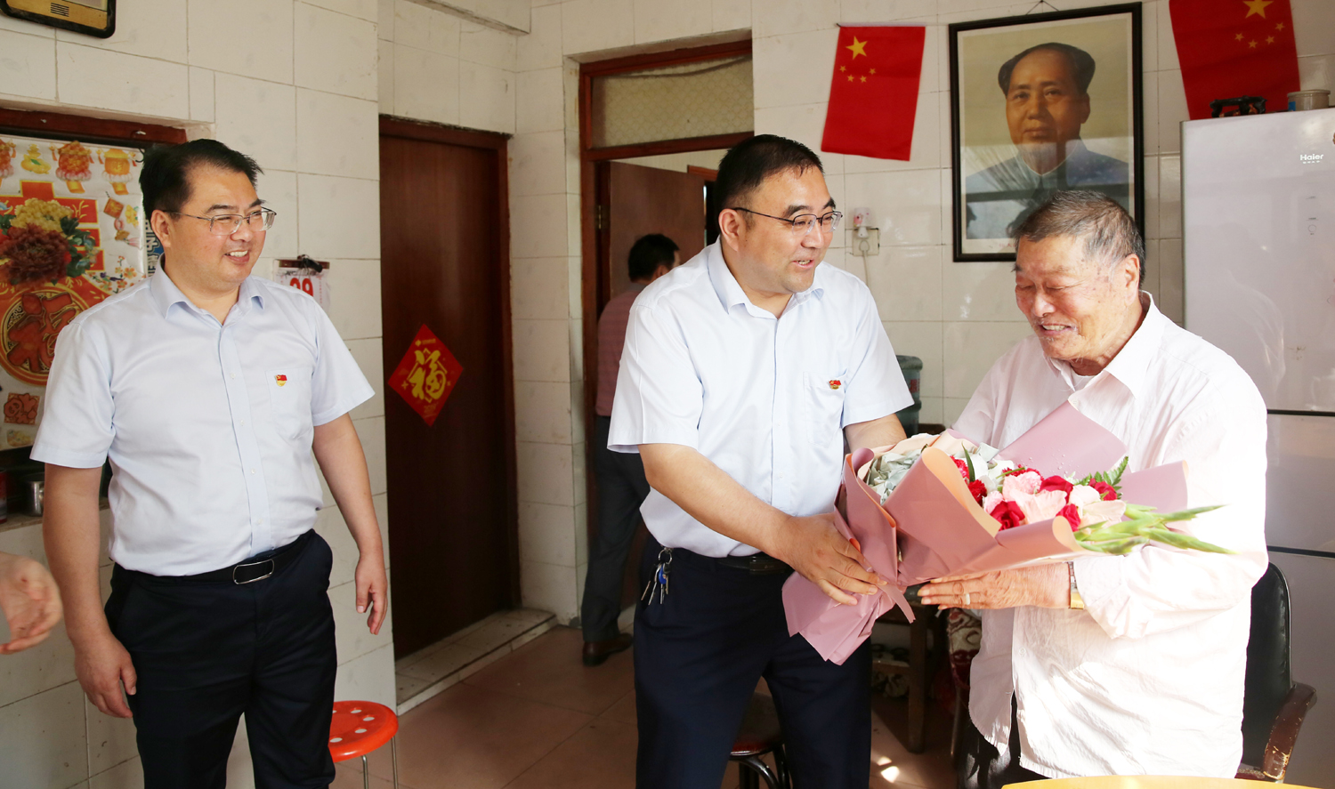 B体育(中国)公司董事长、党委书记杨龙,总经理胡建明、党委副书记戴鸿鸣、纪委书记汪群等领导分组走访慰问部分建国前参加工作的老党员、老干部,为他们送去慰问金和鲜花,同庆新中国七十周岁华诞。
