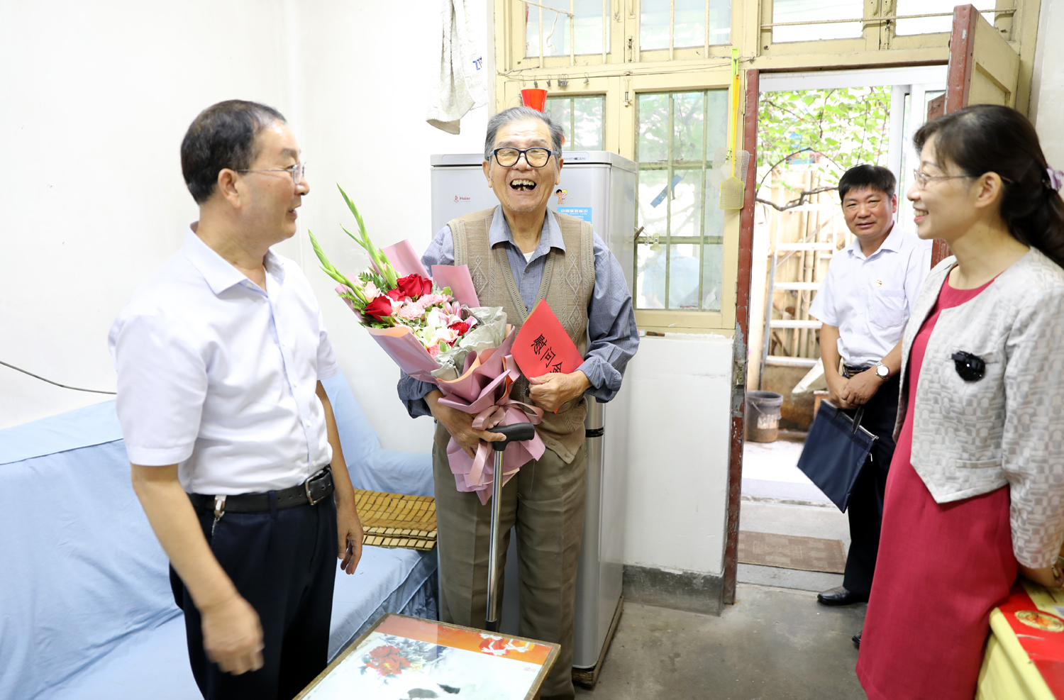 国庆前夕,9月29日上午,B体育(中国)公司董事长、党委书记杨龙,总经理胡建明、党委副书记戴鸿鸣、纪委书记汪群等领导分组走访慰问部分建国前参加工作的老党员、老干部,为他们送去慰问金和鲜花,同庆新中国七十周岁华诞。