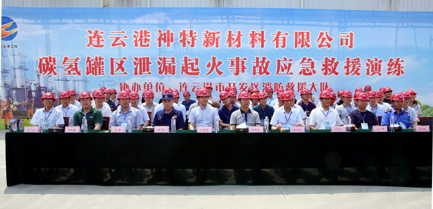 演练活动根据方案进行现场实景模拟,在碳氢罐区发生泄漏后,神特公司应急抢险组、灭火救援组、医疗救护组根据预案进行现场处置抢险,并配合开发区消防队紧急堵漏抢修,排除险情。