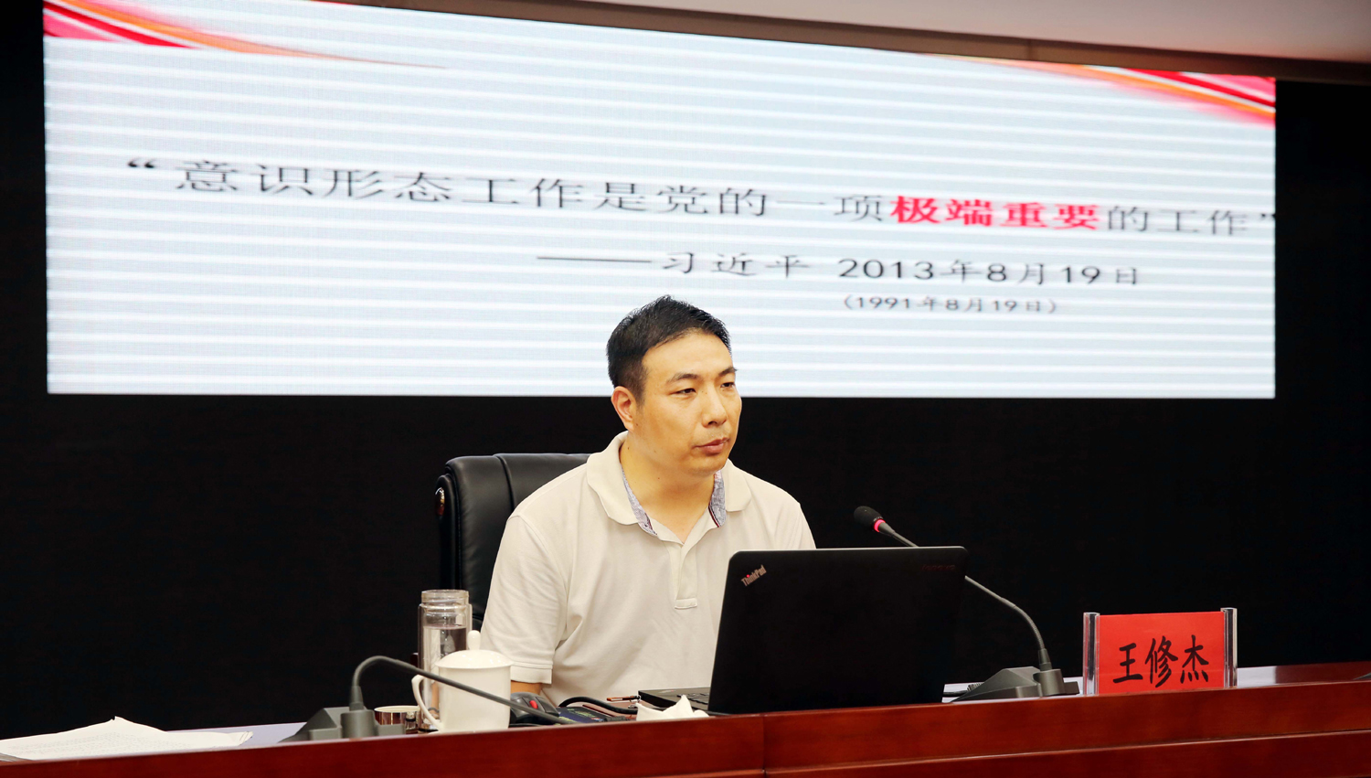 王修杰以“牢牢掌握意识形态工作的领导权”为题,结合国际国内形势和我市实际,围绕充分认识意识形态工作的极端重要性、深刻把握当前意识形态领域复杂形势、全面落实党委意识形态工作责任制等方面内容,深入浅出的剖析解读了意识形态工作的基本内涵、重大意义,报告主题鲜明、内涵深刻、阐述透彻、联系实际、条理清晰,既有理论思考、又有经验总结,为与会人员深刻理解和把握新时代国企意识形态工作的新使命、新要求、新任务、新方法具有很强的现实指导意义。