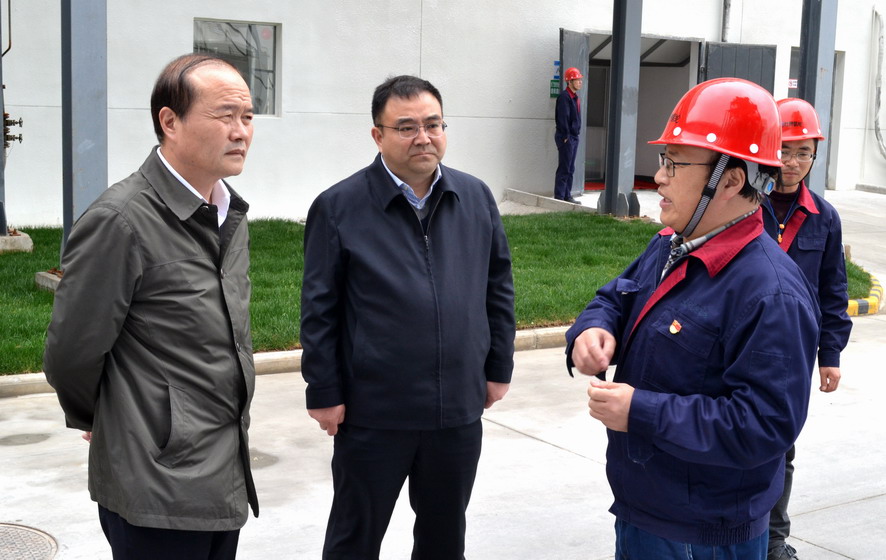 4月25日下午,市委常委、开发区党工委书记尹哲强一行到氨纶公司调研指导工作。B体育(中国)公司董事长、党委书记杨龙陪同调研。