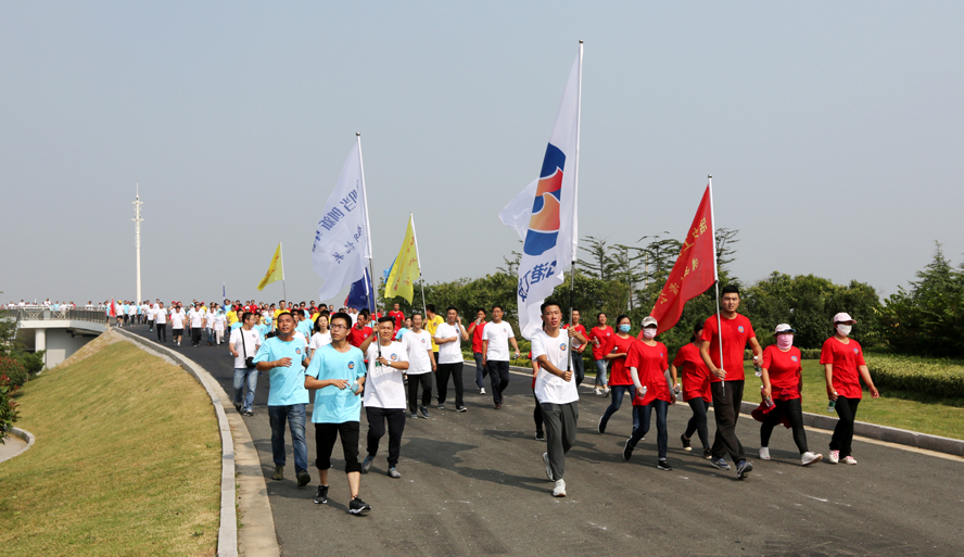 B体育(中国)公司领导汪群、陈如军与来自各单位的600名职工代表参加了开幕式和健步走活动。