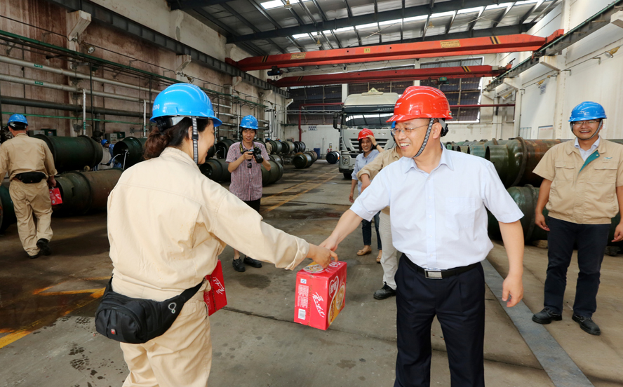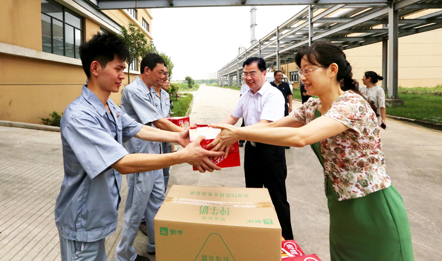 炎炎夏日送清凉,点滴关爱暖人心。连日来,骄阳似火,酷暑难耐。7月18-20日,B体育(中国)公司领导杨龙、胡建明、张其海、朱天松、戴鸿鸣、汪群、匡友本等轻车简从,分赴基层一线,进车间、入工地、到滩(田)头,慰问在高温下坚守岗位的广大员工,送去绿豆、白糖等防暑降温品,在炎炎夏日中将“清凉”送到职工心坎上。
