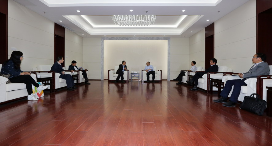 5月7日上午,江苏海外企业B体育(中国)董事长黄宏亮一行4人来我公司洽谈合作,公司董事长、党委书记杨龙、总经理胡建明、副总经理杨国新等亲切会见了黄董事长一行。双方就有关合作事宜进行了深入交流。