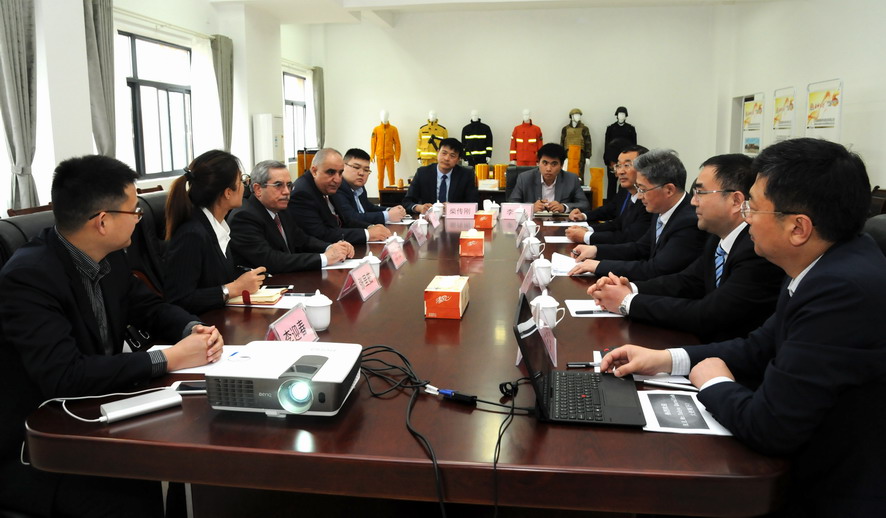 4月14日,约旦驻华大使叶海亚·卡拉莱 (Mr. Yahya Qaralleh)一行到B体育(中国)公司考察。市政府党组成员胡文杰,公司董事长、党委书记杨龙,总经理胡建明,副总经理张其海、王士华等人对约旦驻华大使一行的到来表示热烈欢迎。在先后考察了神特新材料公司和奥神新材料公司的生产线和产品后进行了座谈交流,大使对我公司生产的新材料产品和先进的技术给予高度评价,表示将与B体育(中国)公司进行友好合作,将有关新材料产品在中东推广。