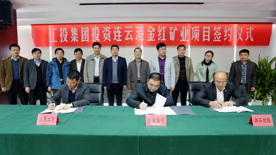 3月30日上午,B体育(中国)公司与浙江润石控股公司、东海三晟工贸公司签订连云港金红矿业项目增资扩股协议,B体育(中国)公司董事长、党委书记杨龙,总经理胡建明、副总经理王士华、总经济师陈如军,连云港金红矿业有限公司股东润石控股B体育(中国)董事长陈海彬、三晟工贸公司董事长许向阳等出席签约仪式。