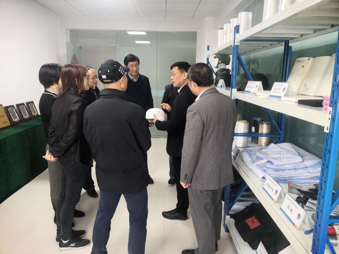江南大学蒋高明教授等一行参观了神特公司产品展示厅,在随后的交流会上,马丕波教授作了高强高模聚乙烯纤维针织产品开发报告,双方就此进行了深入交流。