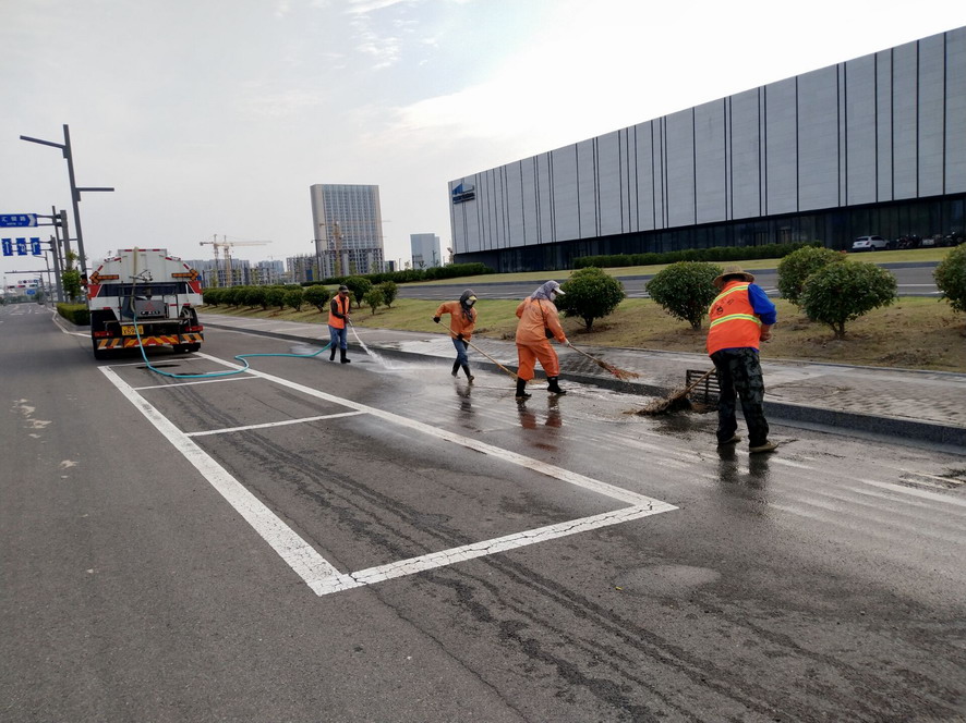 加强道路保洁工作力度,确保环境整治无盲区。公司在重点路段、交通要道、商业街区等人流密集区增加作业人员,延长作业时间,从每天凌晨6点到晚上8点,加强人工捡拾巡查保洁力度,重点关注机扫不到的角落和即时产生的垃圾。重点对花果山大道、东方大道、黄海大道242省道等路段进行多方位巡视,做好城市家居、路灯杆、桥梁杆的擦洗修补喷漆作业,发现路面有抛洒、杂物等立即进行清理,保障道路交通安全无阻。