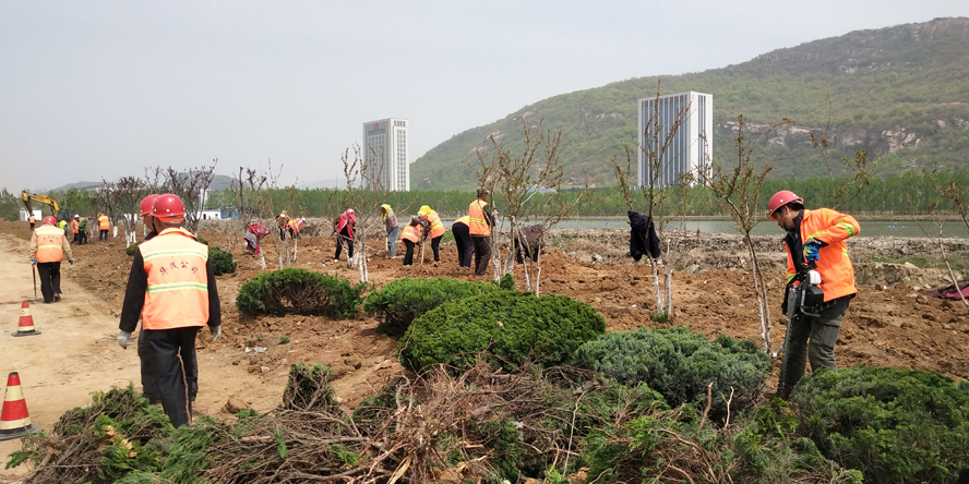 绿化工程施工紧锣密鼓。公司承接的昌圩湖路移苗工程、242省道绿化恢复工程、江宁工业园242高速入口道路绿化补植工程、中科院环境提升改造工程等六项绿化工程,总价680多万元,“五一”期间进入施工关键期,裕升、裕欣、裕祥养护公司和益丰园林公司的技术骨干、绿化工人放弃假日休息,持续投入到紧张有序的施工之中,瑞泰服务公司、盛达市政公司水车、挖掘机、运输车等机械车辆紧密配合绿化工程施工,起苗、运苗、上土、栽苗、搭架、浇水等环节紧扣,每一个作业现场都是一幅人头攒动、车来人往的忙碌劳动画面。