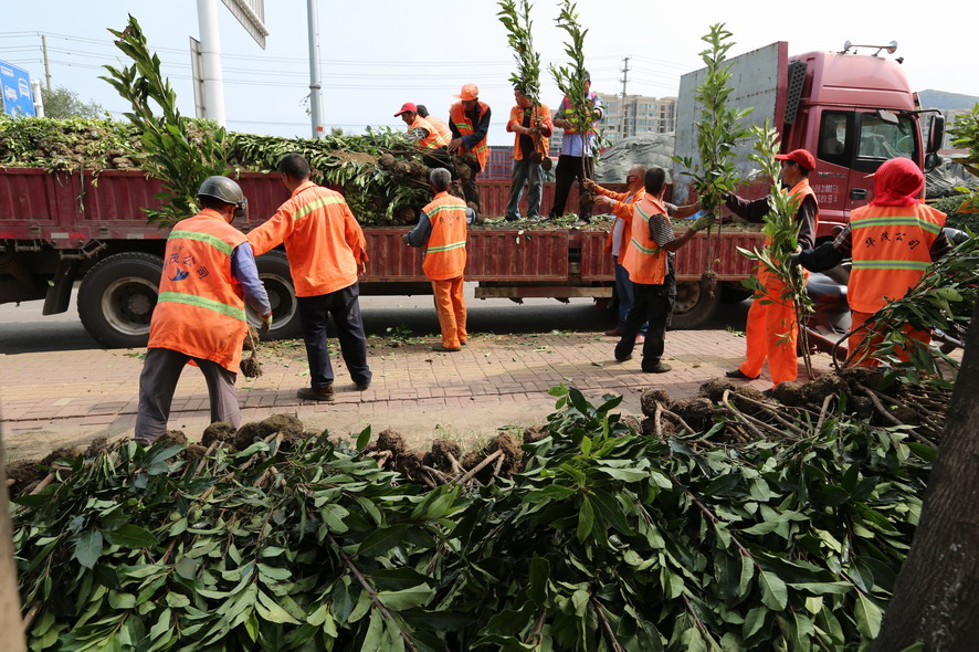 新光路铁路桥至港城大道段南侧绿化带,因为人为踩踏、车辆碾压导致绿化斑秃损坏严重,为尽快恢复绿化原貌,改善市容市貌。8月18日,裕升、裕欣养护公司组织80多名绿化工,从早上6点一直干到下午6点,卸苗、运苗、挖坑、插苗,烈日酷暑下奋战一整天,中午在树阴下吃点盒饭,喝点矿泉水,继续工作,橘黄色工作被汗水浸透、被烈日烤干,这样有好几个来回。“今天B体育手机官方网站入口要在这片绿化补植红叶石楠、金森女贞等模纹小苗1万余株,红叶石楠球等灌木110株,有效改善该路段绿化植被,提升城市形象,B体育手机官方网站入口还要在黄海续道补植草坪近30000平方,在这条1000多米长的路段,有车辆维修点50多家,车辆出入,对路边绿化带伤害非常大,这一路段也是环卫整治长期存在的‘老大难’,这次,在开发区行政执法部门的配合下,B体育手机官方网站入口要重新种植草坪,对这一‘老大难’路段植被进行恢复,另外德兰南路、东路补植苗木近80万元的绿化工程也已开工上土整土,接着要栽苗,根据开发区创卫部署要求,上述这些事情必须在8月底完成,所以说时间相当紧,职工们都冒着高温,加班加点抢进度。”公司副总经理郁宏峰说。