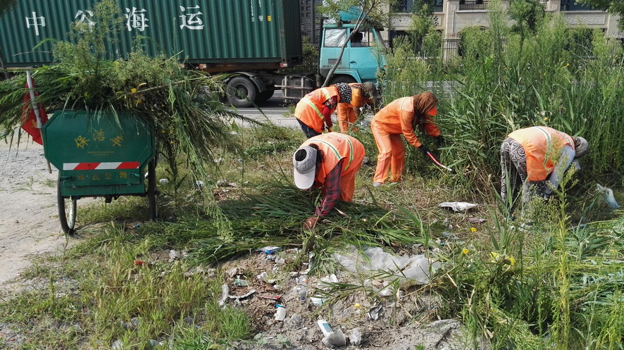 在昌圩湖环湖路南侧一处公共厕所处,裕升养护公司20多名环卫保洁工人正在清理公厕周边的杂草、建筑垃圾,有的在割草、有的在搬砖、有的在推车,一个个汗流浃背,忙得不亦乐乎。正在现场忙碌的保洁大队长刘保军对笔者说:“这一块段还没有交给B体育手机官方网站入口养护,一直无人管理,杂草丛生,成为建筑、装修垃圾的堆放地,根据开发区创卫环境卫生无死角要求和华茂公司生产技术部门指令,B体育手机官方网站入口裕升养护公司承担这一区域环境卫生突击整治任务,从绿化保洁班组抽调20多人来搞突击,大家面对天气炎热、工作量大、清理困难等因素,发扬不怕吃苦、敢打硬仗的华茂精神,奋战在突击现场,每个人都汗流不止,工作服全被汗水浸透,昨天B体育手机官方网站入口已在这里整整干了一天,由于垃圾量大、杂草面积大,B体育手机官方网站入口动用了装载机等机械设备,运杂草的三轮车跑近百趟,清理建筑、装修等垃圾数十吨。估计今天下午能够全部结束。”