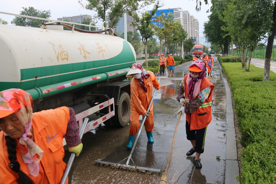 8月19日在火车站广场及周边路段,40多名绿化、保洁工人及洒水车、清扫车等全力保障火车站重点地段的环境卫生,为过往旅客提供一个干净整洁舒心的出行环境。据现场负责人龚本国介绍,随着创卫工作力度的进一步加大,开发区对B体育手机官方网站入口火车站广场及周边路段的环境卫生提出了更高的要求,B体育手机官方网站入口对会泉路商户门前的绿化进行了补植,种植红叶石楠等苗木600多平方,每天专门安排一辆洒水车对火车站广场及周边路段进行巡回清洗清扫,确保路面干净无尘土,对广场站台、护栏、果皮箱、路灯杆、花坛进行清理擦洗,对下水道进行清掏,盖板更换维修。为确保创卫工作任务高标准高质量完成,连日来,绿化养护、环卫保洁工人天天早上6点上班,到晚上10点下班,中午吃饭休息只有一个小时,每天工作10多个小时,为创卫工作做了很多实实在在的事情,他们真的很不易,很辛苦,只因有了他们的辛勤劳动、无私奉献,城市环境卫生才会越来越好。