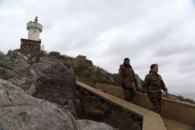 △2017年2月21日,王继才夫妇站在江苏开山岛的码头。