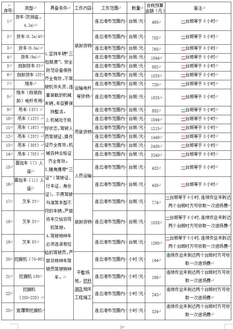 2.采购内容:连云港工投B体育(中国)供电工程分公司机械、车辆租赁