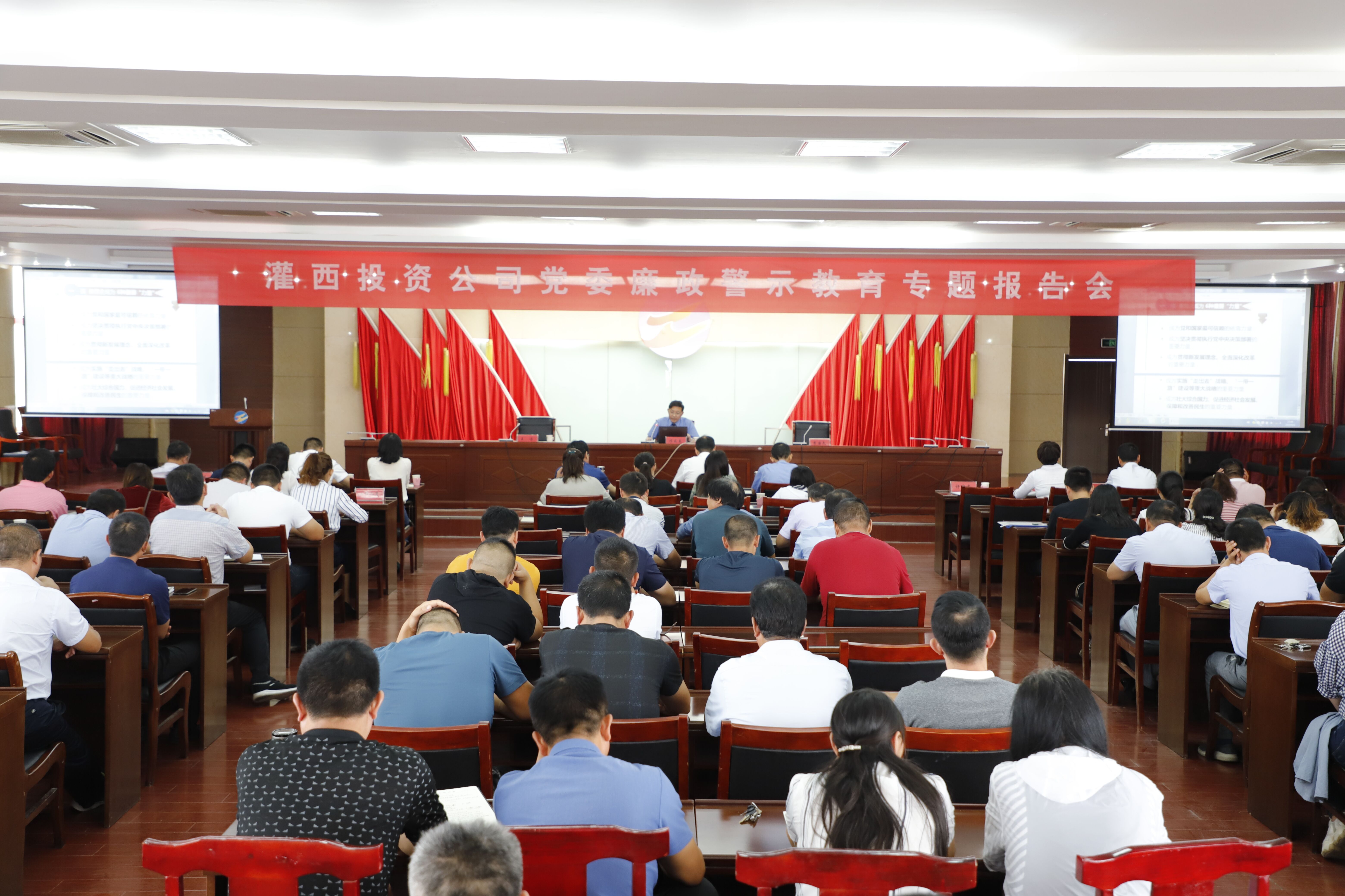 9月6 日,灌西投资公司举办廉政警示教育专题报告会,邀请灌云县检察院检察长陈长春、检察院党组成员王浩进企业作报告。