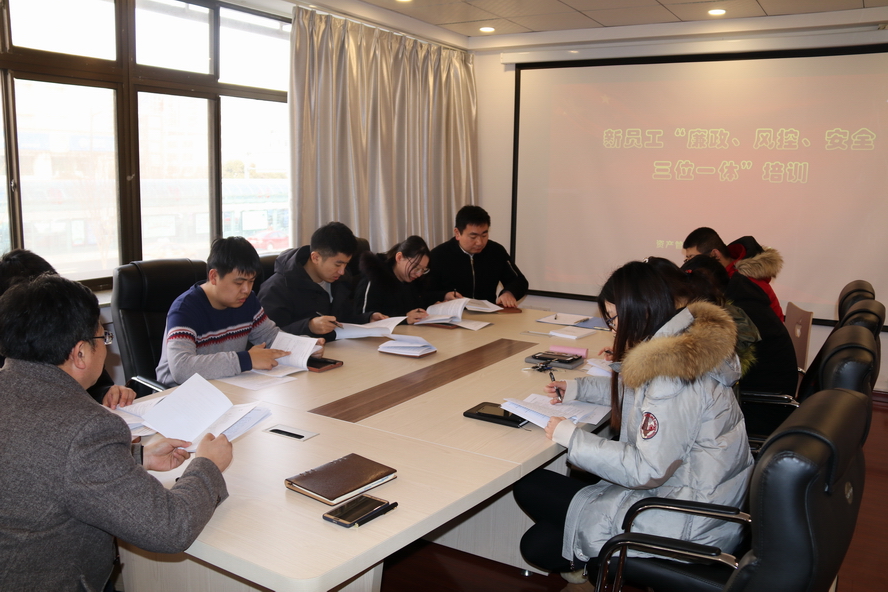 为帮助新员工更快胜任本职工作,熟知岗位职责和企业规章制度,1月31日下午,资产管理公司工会在职工道德讲堂举办新员工廉政、风控、安全“三位一体”培训班,公司工会主席沈克茫参加并主持培训班。