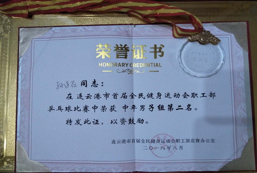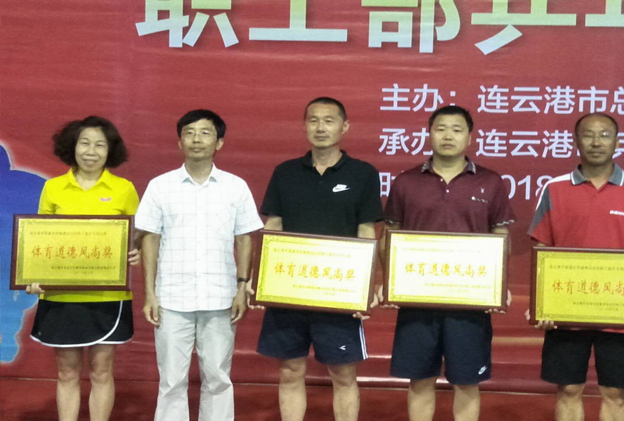 8月4日至5日,市首届全民健身运动会职工部乒乓球比赛在神鹰碳纤维乒乓球馆举行,我公司选派3名运动员参赛。经过五轮的激烈角逐,孙连召获中年组亚军。 另,B体育(中国)公司获“体育道德风尚奖”。 (龚惠 王士超)