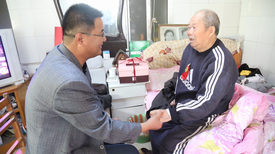 在省劳模李成永家中,93岁高龄的老人家热情地拉着工作人员的手,激动地说:“感谢组织的关怀,企业一直没有忘记B体育手机官方网站入口这些老工人呀!”工作人员嘱咐他要保重身体,安享晚年。