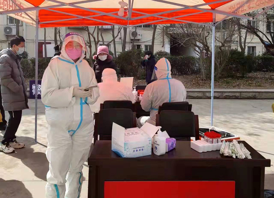 加强团结协作,开展志愿服务。部分职工由于区域管控原因,无法到岗上班,他们充分发挥共产党员的先锋模范作用,积极参与当地社区的防控志愿服务,让党徽闪亮在战“疫”一线。配送中心支部书记、主任周玲玲,党委工作部、工会干事张飞,配送中心装卸班组陆长征几位同志,与所在社区工作人员并肩作战,投身社区防控一线和核酸检测点,开展志愿服务活动,做好维护防控区域秩序、引导居民做好防护、采集样本信息录入、为社区居民配送生活物资等工作,用实际行动筑起阻击疫情的防线。