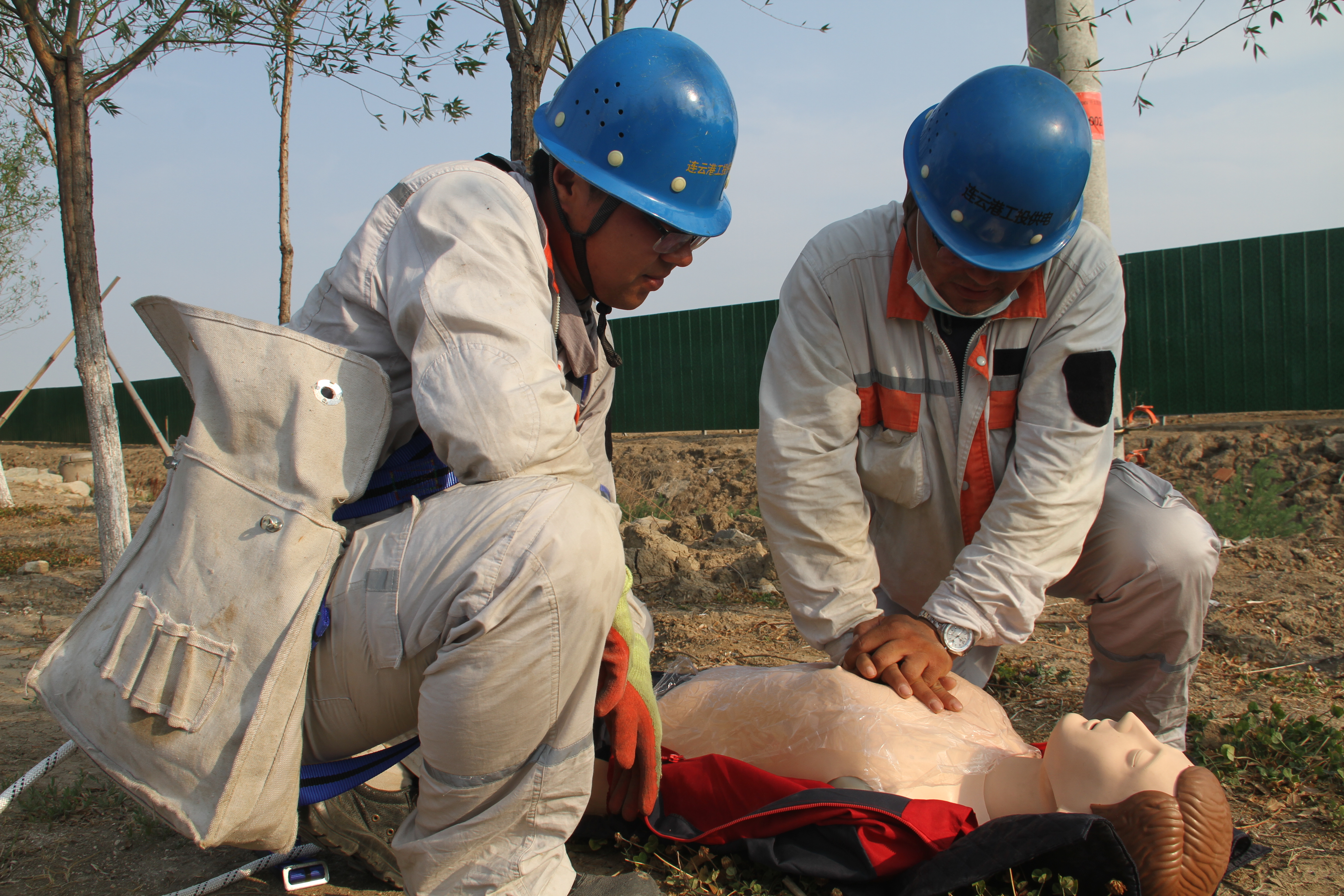 本次活动,模拟台北变电所10KV开太线创智街区支线2#杆AB接地短路,绝缘导线过负荷,燃烧滴落物引燃路边杂草;1名线路抢修人员处置时发生高处坠落。承办单位台北供电所现场运行值班人员按操作票流程模拟倒闸操作、并宣读流程,拨打公司值班室电话,抢险救援组接到电话,向总指挥汇报,总指挥下达抢修救援指令。随即台北供电所派出2名外线人员,进行干粉灭火器灭火模拟操作,抢修救援组立即奔赴现场,了解情况展开工作,采取初步救援措施;医疗救护小组人员配合所内救护人员1名,同步领取物资。现场模拟医疗救援,进行伤口消毒处理,无菌纱布绑扎演示,医疗救护组处理完毕,宣读伤情另外严重情况,须120急救,启动应急程序,模拟拨打120电话。模拟人员进行上杆装备、劳保装备穿戴演示,宣读注意事项,并进行分支箱接头、安装、断线紧线操作演练等。活动环节结束后,安全管理部刘福勇宣告事故应急救援结束。