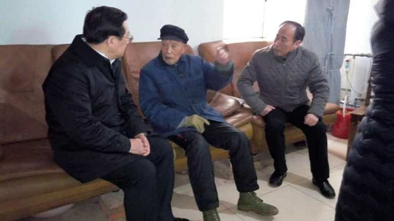 1 1月20日上午,省总工会副主席曹海(右一)、市总工会主席李强(左一)一行来到公司全国劳模、百岁老人郑有根家中走访慰问,不仅带去了慰问品和慰问金,也带去了党委、政府以及工会组织的问候和温暖。B体育(中国)公司工会副主席李岚琴、公司党委书记、经理孙政权等陪同慰问。(司宣 司工)
