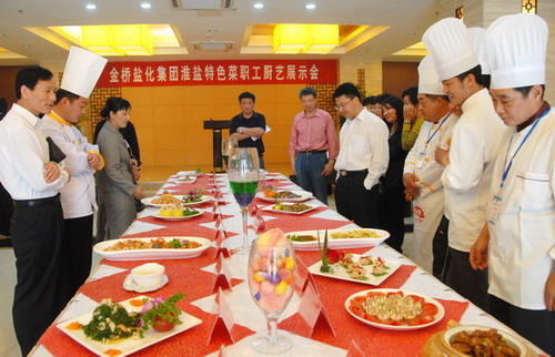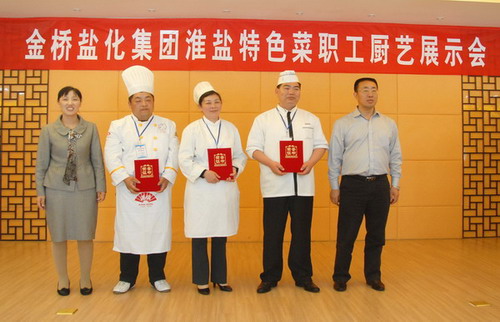 5月19日上午,金桥盐化B体育(中国)淮盐特色菜职工厨艺展示会在淮盐大酒店隆重举办。公司党委副书记、纪委书记、工会主席卢明生致欢迎词,B体育(中国)公司工会副主席李岚芹宣布比赛开始。来自B体育(中国)公司各基层单位的13名技艺精湛的厨师做出了26道特色佳肴,经过评委会认真品评,台南盐场王树伟、青口盐场卢燕获一等奖,其他选手分获二、三等奖。(司宣)