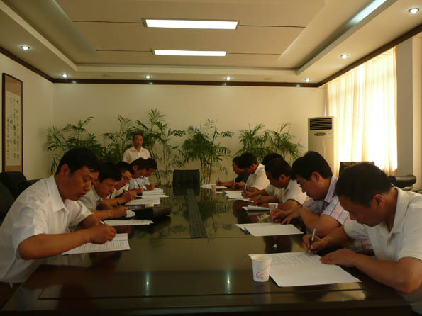 为深入扎实地开展“安全生产月”活动, 公司高度重视职工安全教育,公司和各供电所层层组织安全学习培训,重点学习安全生产标准化、岗位安全责任告知书和“四表”监控法等有关内容,全面落实员工应知应会的各项任务。图为该公司组织基层供电所管理人员在认真答题。(陈年)