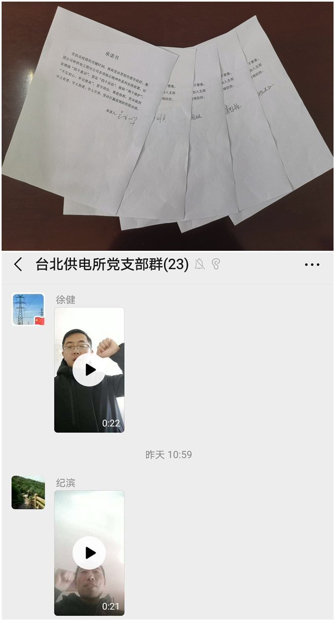 为充分贯彻落实党中央关于打赢疫情防控阻击战的重要指示精神。2月13日,台北供电所党支部开展了“防控疫情,B体育手机官方网站入口在行动”主题党日活动。该支部以“我是党员我宣誓”、“疫情防控我承诺”、“我为疫情防控献一策”系列活动,充分利用网络直播平台和微信APP,通过录制个人宣誓短视频、承诺书签字、集体线上学习等方式方法,号召广大党员同志充分发挥党员先锋模范作用,在抗击疫情的关键时刻,必须服从命令、听从指挥;坚守岗位、恪尽职守;坚定信心、冲锋在前;不忘初心,牢记使命;坚决打赢疫情防控阻击战。(钱明华)