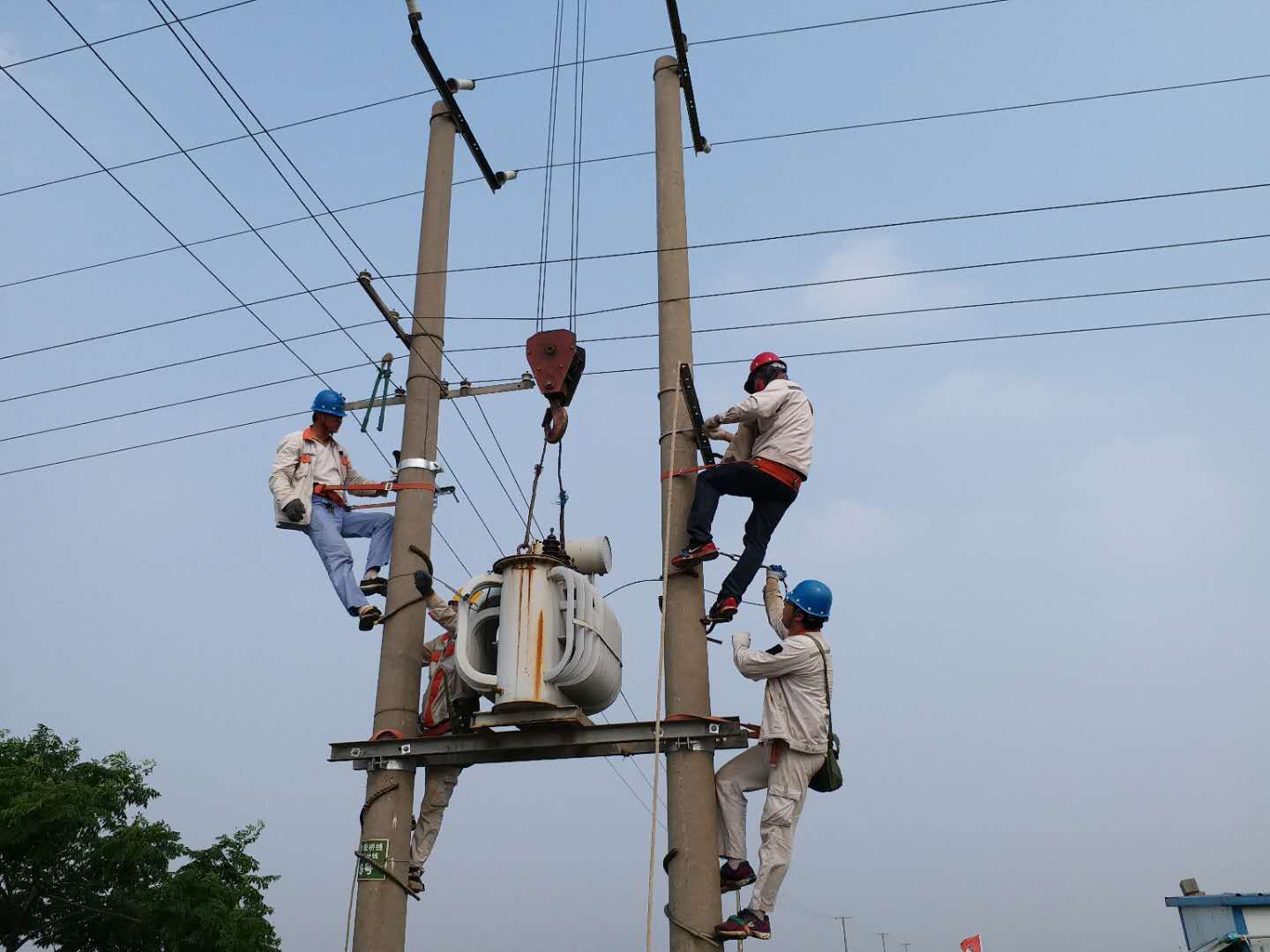 近日,徐南供电所组织人员到养殖区施工。因温度高,鱼塘含氧量小,线路电容量小,为减小养殖区停电的风险,供电所人员在原有线路上进行合理调整,全心全意服务客户,力保电量稳定供应。(邱利益)