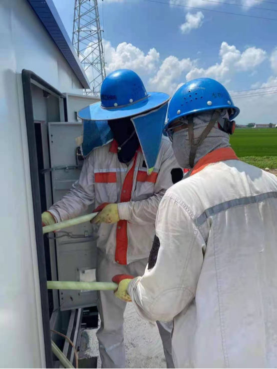 2021年8月6日上午,接到尚风风电三期工程抢修任务,供电公司工程营销部班组长于广兵带领班组成员即刻前往现场时间紧任务重,抢修现场地方狭窄,给抢修工作带来一定难度。但是大家始终保持精神高度集中,每个步骤做到精益求精,没有半点马虎。各司其责,没有一丝懈怠,有条不紊地开展着紧线、放线、架线等工作,在抢修人员的队伍当中不乏新分配到岗的年轻身影,他们并没有因为繁琐或是加班加点的工作而有一点怨言,他们积极投身工作,帮助老师傅做着自己力所能及的工作。