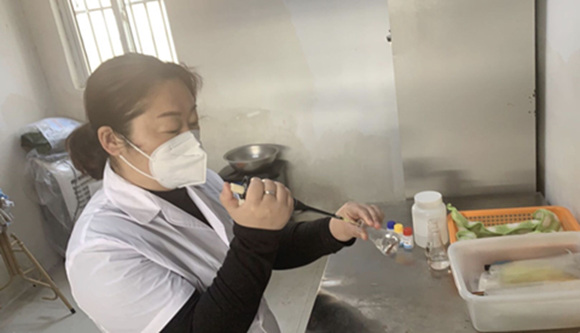 “疫情期间,每天都要随机选取摊位进行取样,对蔬菜、水果、生鲜肉类、干制品等的农药残留、非法添加物、滥用添加剂等进行检测,检测项目涵盖常见的食用农产品风险项目,俗话说民以食为天,所以一定把好群众的‘入口’关,让居民吃得放心,这样我的工作才有价值。”疫情防控命令下达后,陆丽丽同志被巨龙农贸市场服务中心安排负责市场内的农产品检测工作,她放弃春节节假日休息,即刻上阵,每日对市场摊位农产品进行抽检,全力把好入市食用农产品质量关,维护销售环节食用农产品消费安全。