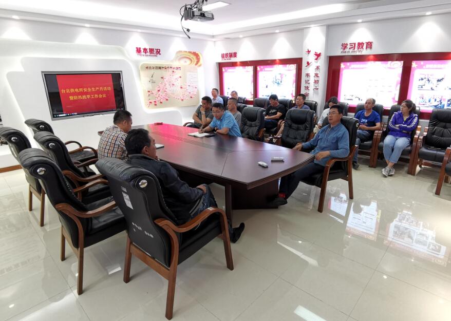 6月6日上午,台北供电所在该所二楼会议室召开2019年安全生产月活动暨防汛防旱工作会议,传达学习了经理孙政权、副经理袁庆国的讲话及公司相关文件精神。 会上,该所动员全体员工以“防风险、除隐患、遏事故”为主题,牢固树立安全发展理念,扎实开展安全生产月各项活动;号召干部职工牢固树立防大汛、抢大险、救大灾的思想,坚持防汛抗旱并重,狠抓各项措施落实,全面提高自然灾害防御能力,保障职工群众生命财 产安全。(钱明华)