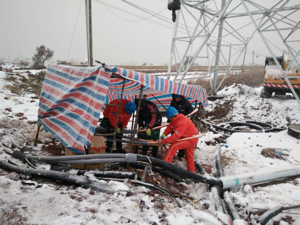 近日,持续的低温大雪天气,港城银装素裹,让B体育手机官方网站入口真切地感受到深冬的寒冷,人们宁可闲在家里,也不愿意外出,但是在公司35kV和风风电的施工现场,工人们正冒着严寒加紧电缆敷设和电缆头制作,全面掀起冬季施工大干热潮。 2018年新年临近,为完成年前的施工节点目标,项目负责人带领员工们冒着大雪严寒奋战在施工一线,不怕雪天的寒冷,他们仍然坚守在岗位上,忘记节假日的休息时间,加班加点施工,员工们干劲十足,精神饱满,全身心投入到紧张的工作中。(电宣)
