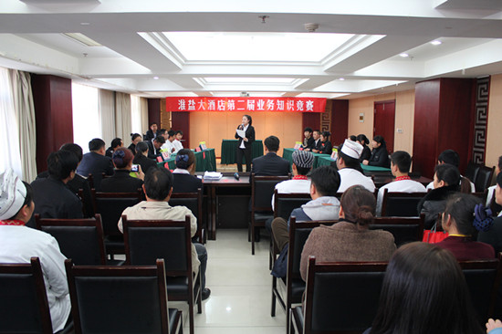 为了进一步提高酒店全体员工安全生产意识以及酒店专业业务水平,淮盐大酒店于11月19日举行第二届“酒店综合知识竞赛”,酒店总经理伏运余、副总经理杨帆、质检经理周洪近、餐饮经理郭天丽担任裁判,现场气氛非常活跃,竞赛取得圆满成功。
