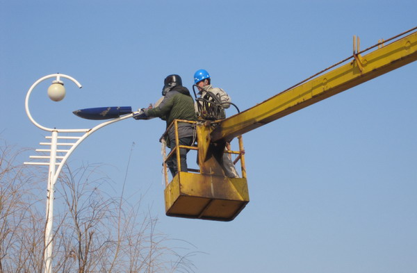 1月23日,为使青口盐场居民过一个快乐、详和、明亮的春节,青口供电所组织职工义务为盐场检修路灯。(宋中文)