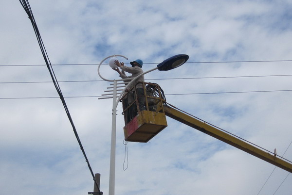 日前,青口供电所为青口盐场烘托中秋、国庆“两节”气氛,美化、亮化街道环境,在人力紧张的情况下,抽出6名职工,利用两天时间,义务抢修路灯70余盏。(宋中文)