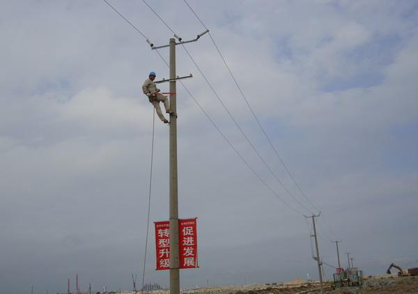 8月27日,该所接到连云新城建设指挥部通知,要求在施工道路沿线全部架设临时路灯,并在8月31日完成,以加快新城工程建设进度。这需要在短短三天内安装60盏路灯、架设3000米照明线路与部分电杆。该所领导班子既感受到新城建设指挥部领导的信任,又深感任务的艰巨。面对人员少、工程急、施工地形复杂等困难,该所安排人员抓紧制定方案,准备材料,并积极组织人力,除留下变电所和电费收缴值班人员外,其余人员全体出动。一场与时间赛跑、与困难抗争的会战在连云新城建设工地上拉开了序幕。