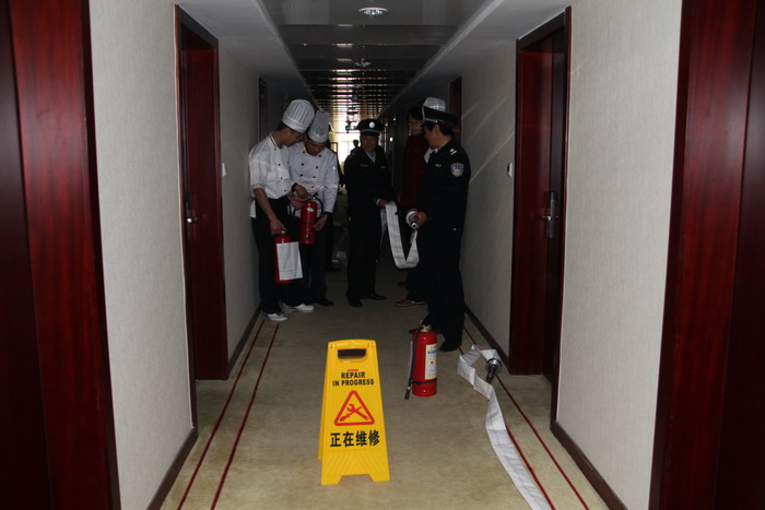 一是增强全员消防意识。要求酒店全体从业人员必须做到两知三会,即知防火知识,知灭火常识,会报火警,会自救逃生,会协助救援。同时张贴消防安全“四个能力”的海报,发放“四个能力”建设的资料给员工熟记,在区消防部门协助下,加强对员工消防知识培训。
