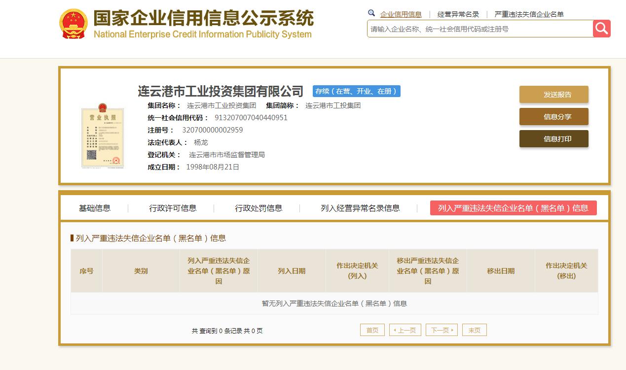 6、无不良信用查询记录查询(国家企业信用信息公示系统(加盖公章))