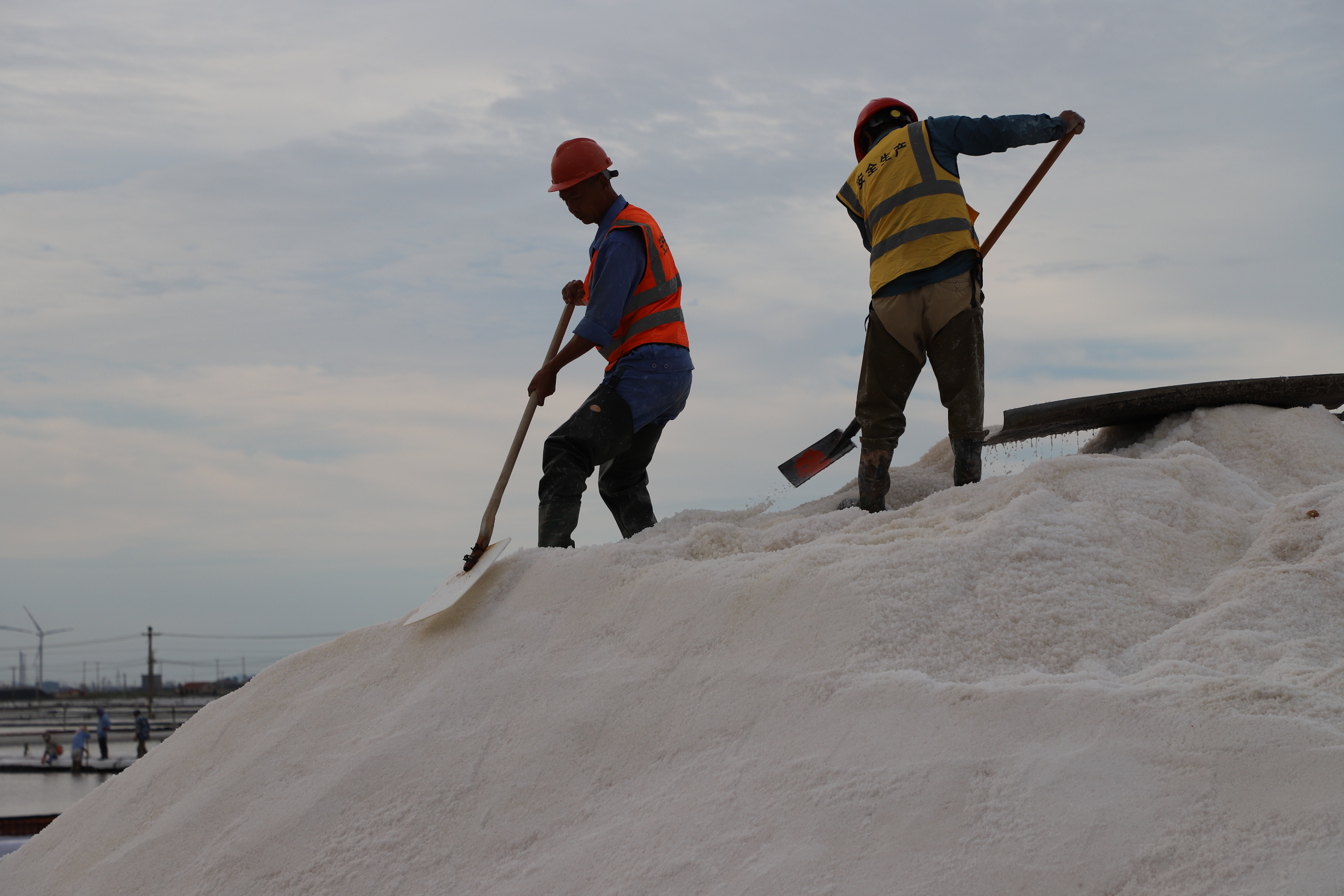 原盐生产不松劲。每年的国庆假期总是与“秋扒”不期而遇。由于受连续的阴雨天气影响,今年的秋扒工作一度延后。9月29日--9月30日,凌晨5点钟,日晒盐田的盐圩小路像往常一样成了一道最美的风景线,盐工们全副武装奔赴各自工作点位进行收拉塑布、排淡等工作。为了抢时间,抓进度,盐工们紧锣密鼓地忙碌起来,筹备扒盐工作,天气刚转好,只见有的在整理塑布,有的破碴,10月2日,10台扒盐机组全部运转起来,洁白的盐廪逐渐扩大,节日期间将扒盐30000余吨。