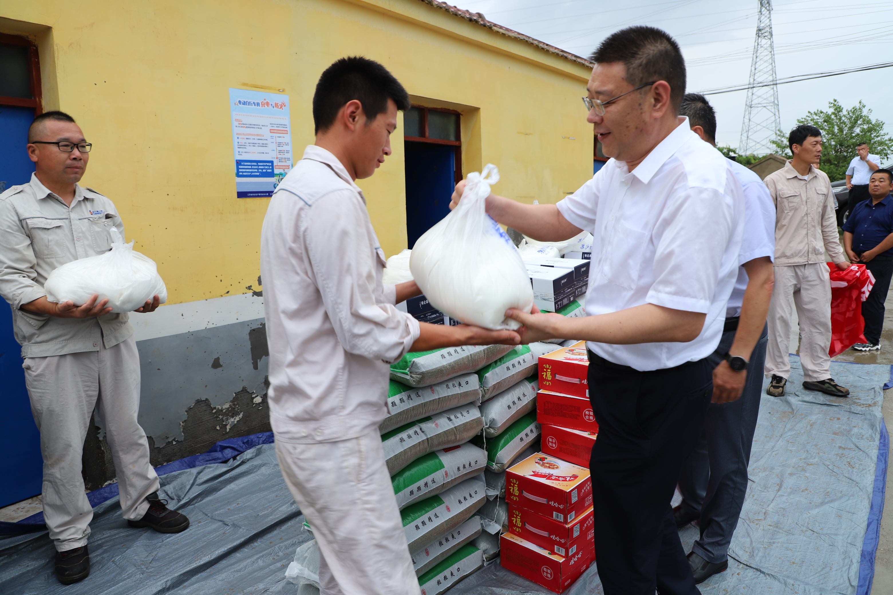在日晒制盐滩头、宵洋物流码头、资源公司闸站、绿化保洁街头,公司领导分批带队深入现场,为他们送去了“清凉礼包”,叮嘱他们一定要合理安排作息时间,保持身体健康,以充沛的体力和饱满的热情投入安全生产等各项工作中。同时要求各分公司要根据夏季特点,强化安全教育,合理安排好职工高温天气工作时间,特别是要加强对露天作业场所和高温作业岗位的防暑降温措施落实,切实做好高温期间的防暑降温工作,确保一线职工度过一个安全、清凉的夏季。