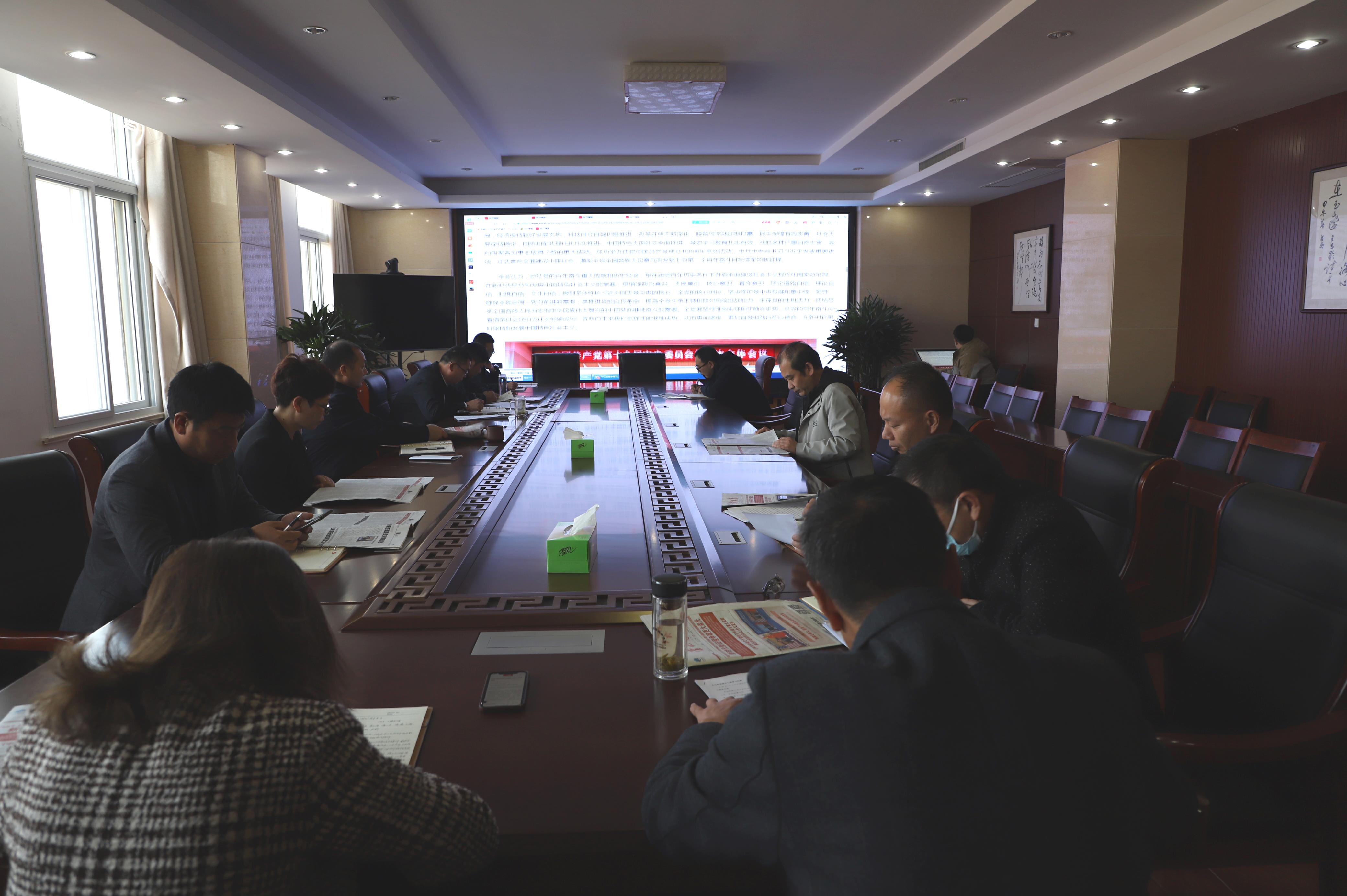 11月19日下午,灌西投资公司党委召开十一月份中心组学习会,深入学习贯彻党的十九届六中全会精神。公司领导班子全体成员、党群部门负责人等参加学习。