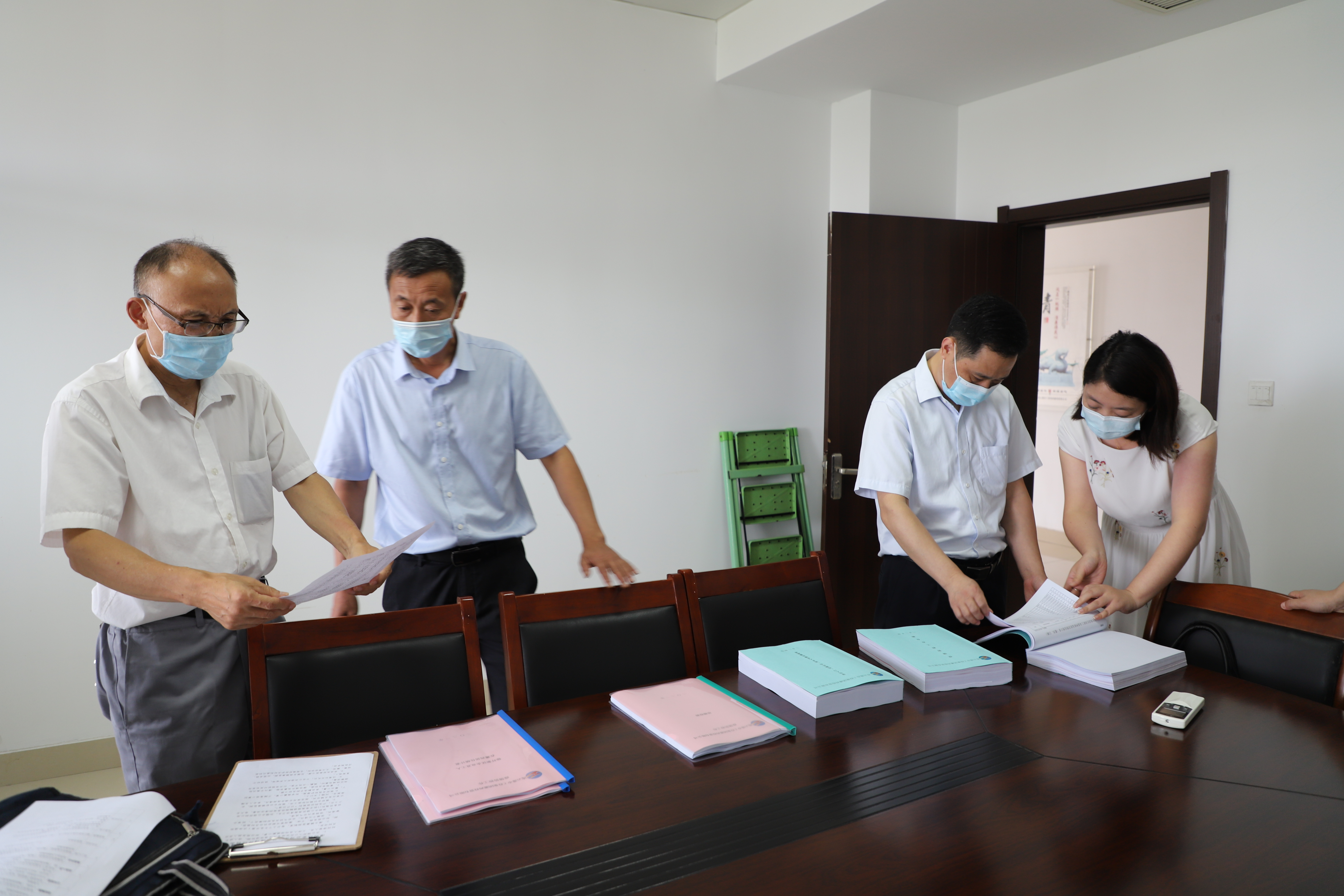 8月11日,B体育(中国)公司疫情防控督查组一行在工会主席刘承志的带队下,来灌西投资公司检查防疫工作,公司党委书记、董事长、总经理李国文、党委副书记、工会主席王宏陪同检查。