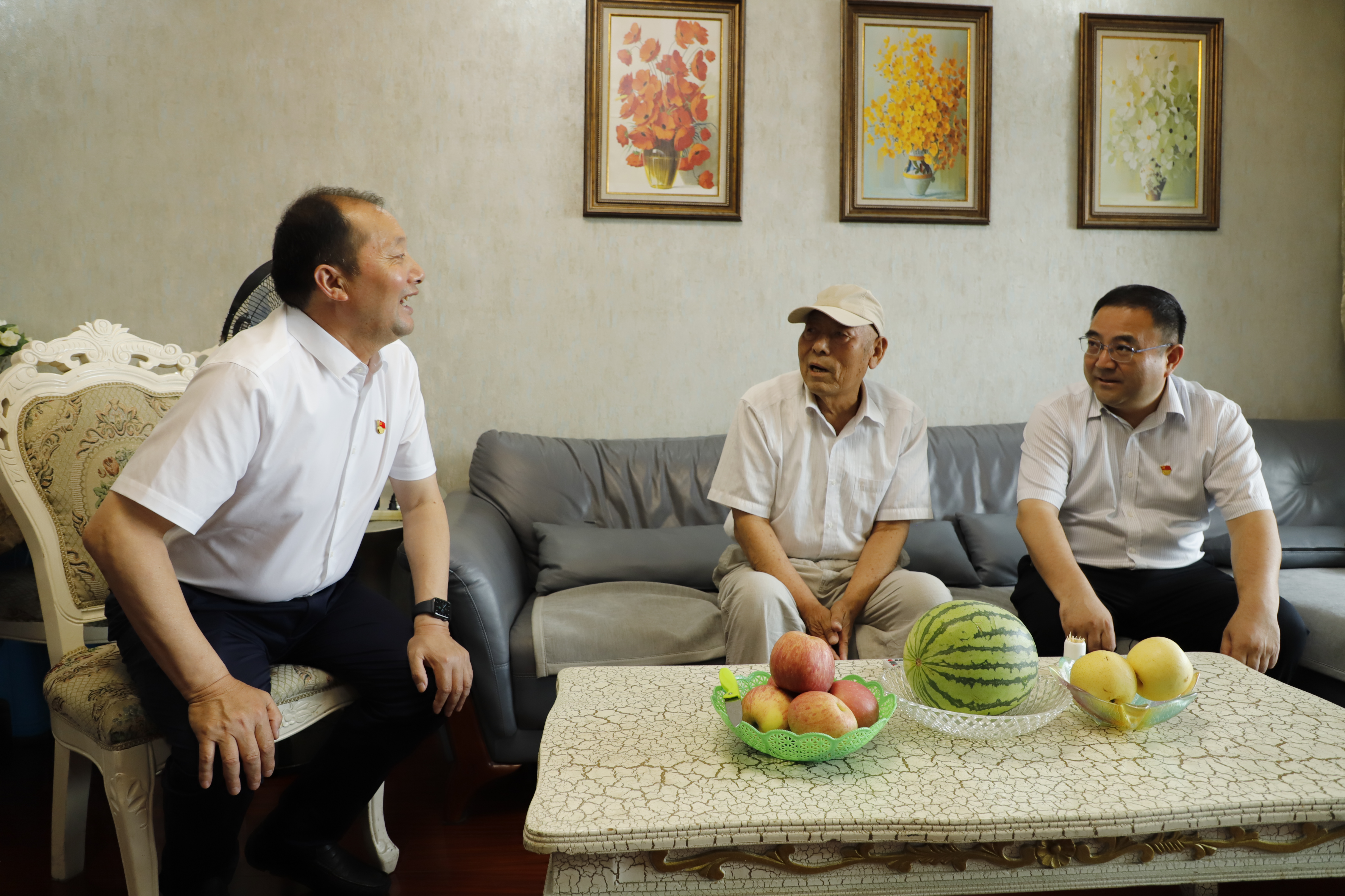 在喜迎中国共产党成立100周年之际,6月24日下午,B体育(中国)公司党委书记、董事长杨龙走访慰问灌西困难老党员,灌西投资公司党委书记、董事长、总经理李国文陪同。
